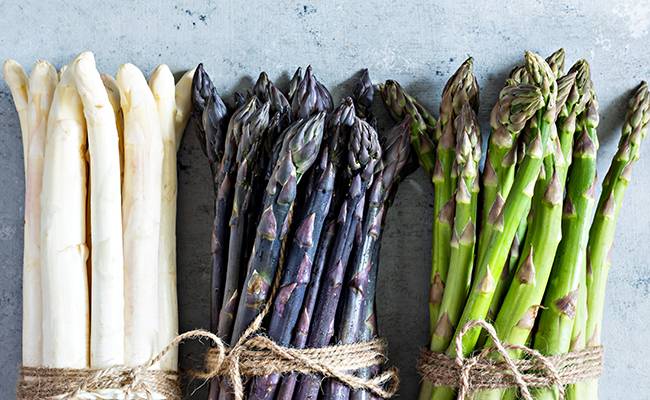 De début mars à la fin juin, on distingue trois variétés d'asperges :